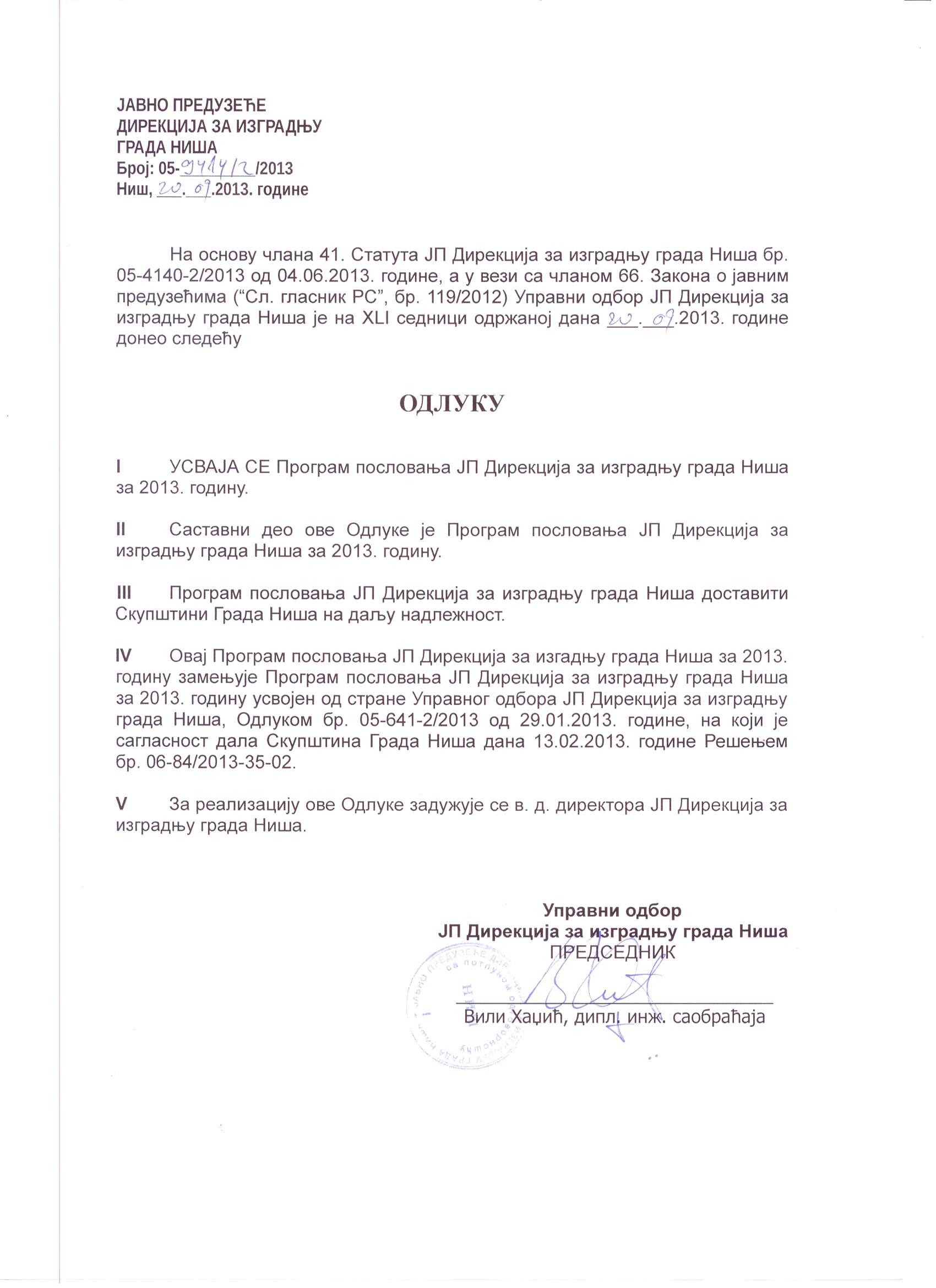 6-3 Odluka UO - Program poslovanja JP Direkcija za izgradnju 2013.jpg